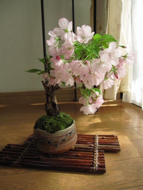 ミニ八重桜盆栽 お家でお花見 ミニ桜盆栽(茶小凹)