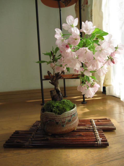 ミニ八重桜盆栽 小さいからベランダでも育てる事ができる 楽しい ミニ桜盆栽(茶小凹)