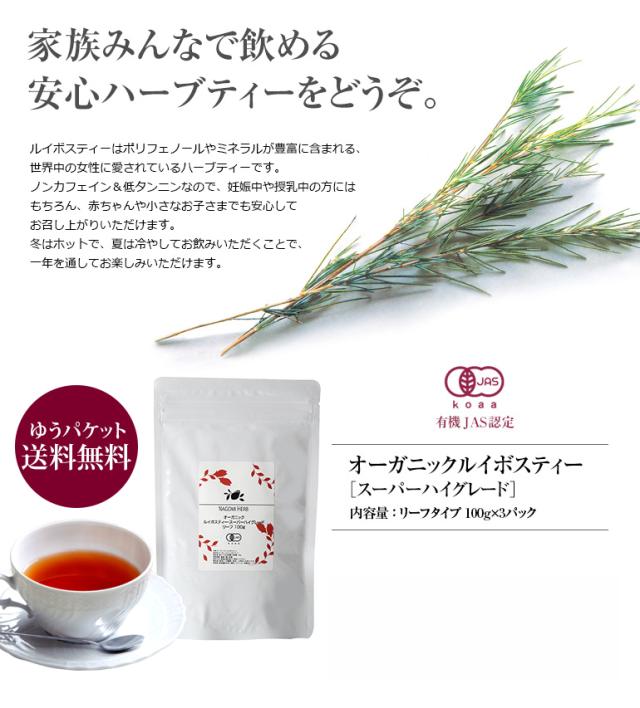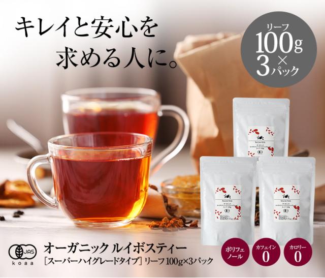 ルイボスティー スーパーハイグレード リーフ 100g×3パック オーガニック ルイボス 健康茶 ノンカフェイン お茶 有機JAS