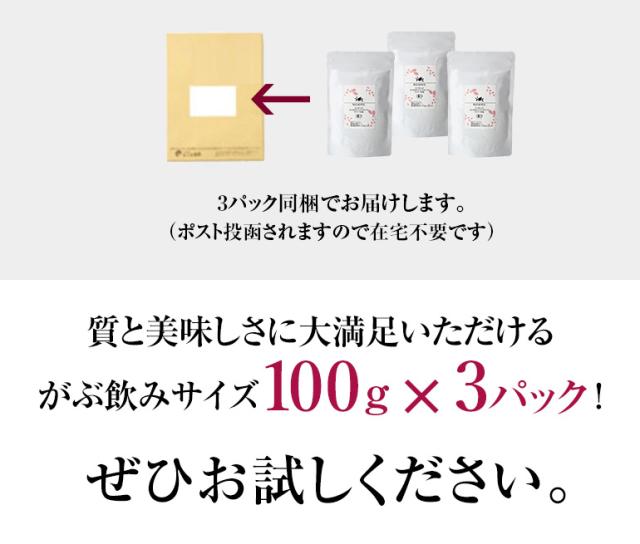 【特徴】店長が自信を持ってオススメします。有機JAS商品なのに、送料無料でペットボトル1本分がなんと7円!がぶのみできる安さなのです。茶葉は完全オーガニックなので安心・安全♪ 女性や子どもに嬉しいノンカフェイン・低タンニン。もちろん、フラボノイドもたっぷり。自然な甘みとすっきりした味わいの世界的に人気のあるお茶です。【おすすめポイント】こちらの商品はオーガニック です。オーガニックとは、化学的に合成された肥料及び農薬を使用せずに、土壌の性質に由来する農地の生産力を発揮させ自然と融合する [ 有機農法 ]で生産された農作物のことです。【おすすめの飲み方】ポットに3g程度のリーフをいれ、2〜400ccのお湯を注ぎ、3〜5分蒸らしてお召し上がり下さい。(蒸らし時間が長い方が濃く出ます)お湯の量はお好みに応じて調整してください。 【商品スペック】産地:南アフリカ共和国/セダーバーグ地方内容量:100g×3原材料:有機JAS認定ルイボスティー