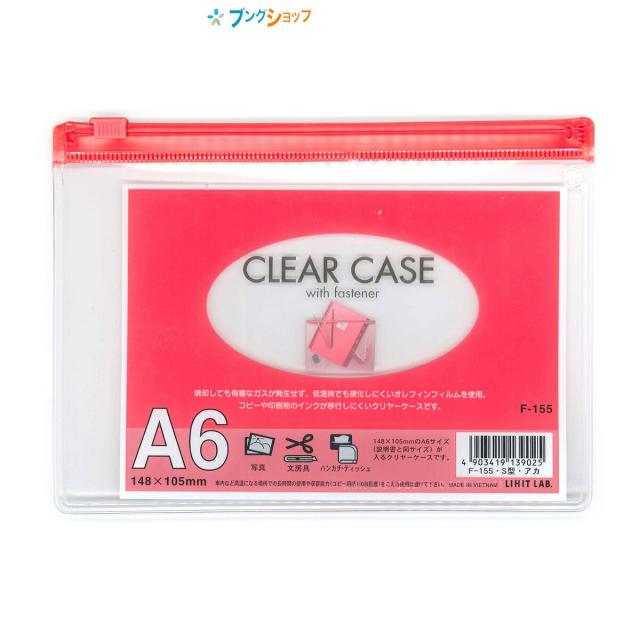 リヒト クリアケース ファスナーケース A6S F-155赤 リヒトラブ LIHITLAB 書類 保管 収容 収納 分類 保存 整理 インナーケース 会社 学校 連絡袋 大切なカード 通帳 保険証 スライドファスナー 中身が確認できる透明ケース