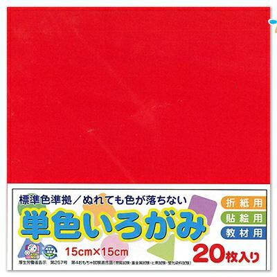 エヒメ紙工 折り紙 単色 いろがみ 色紙 15cm 20枚 赤 あか origami