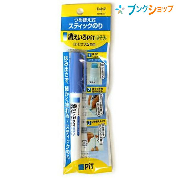 トンボ鉛筆 固形のり 消えいろピット ホソミ 塗ったところが一目瞭然 ペン型スティックのり 詰め替え式 ペン型タイプ 細かい部分の貼り付け ムラなくきれいに貼れる 接着時間の速さ 強い接着力 事務作業 PT-PC 事務接着