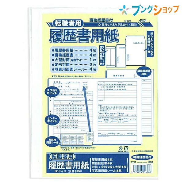 日本ノート 履歴書 パート&バイト用 履歴書用紙4枚・職務経歴書4枚・大型封筒1枚・定型封筒2枚・写真用シール4枚 SY-27 アピカ