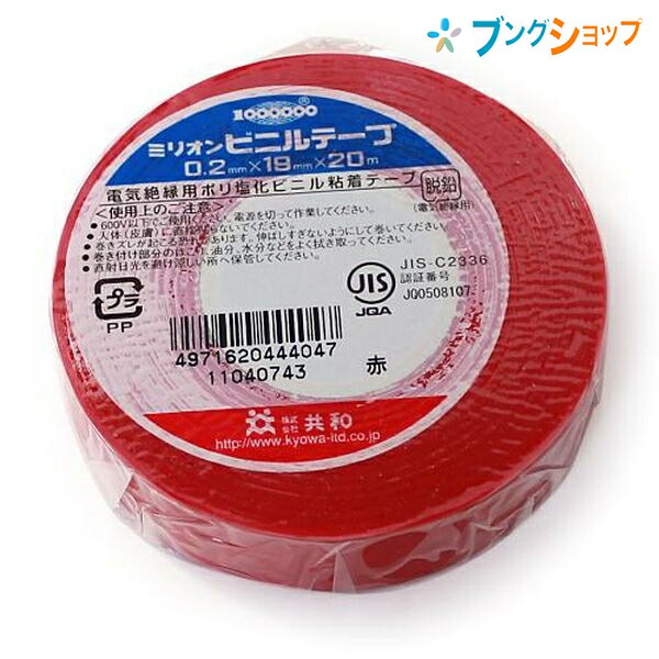 共和 ビニールテープ ビニールテープ 19mmx20m 赤 KYOWA キョウワ 強い粘着力 豊富なカラー種類 手切れ性が良い 電気配線用 補修作業 金属 木 ガラス 布 作業性抜群 日曜大工の必需品