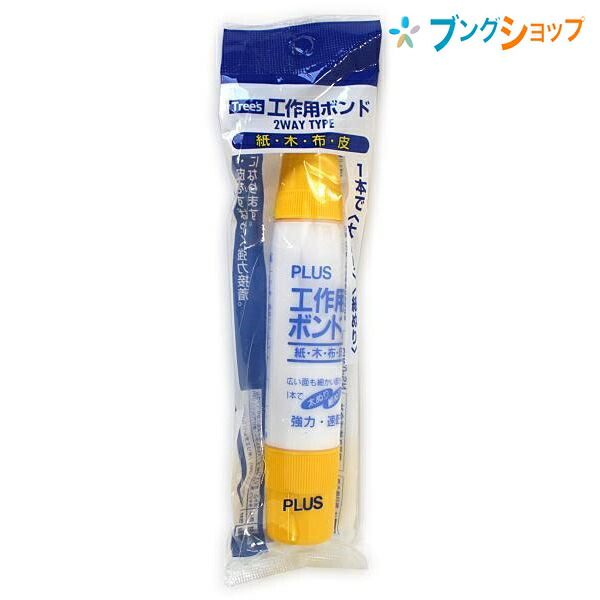 プラス 工作用ボンド 太・細のツインタイプ 50g 紙・木・布・皮用 NS-030S 28-302 速乾 すばやく接着 乾くと透明に 広い面・細かいところと1本で2通り強力接着できる工作用ボンド