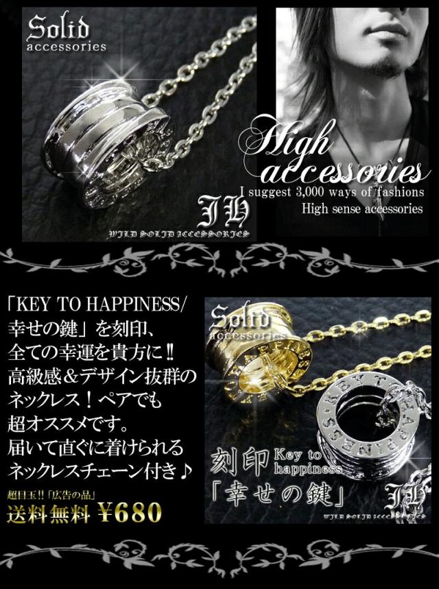 超目玉商品です!!「KEY TO HAPPINESS/幸せの鍵」を刻印、全ての幸運を貴方に!!高級感&デザイン抜群のネックレス!!ペアでも超オススメです。届いて直ぐに着けられるネックレスチェーン付き♪