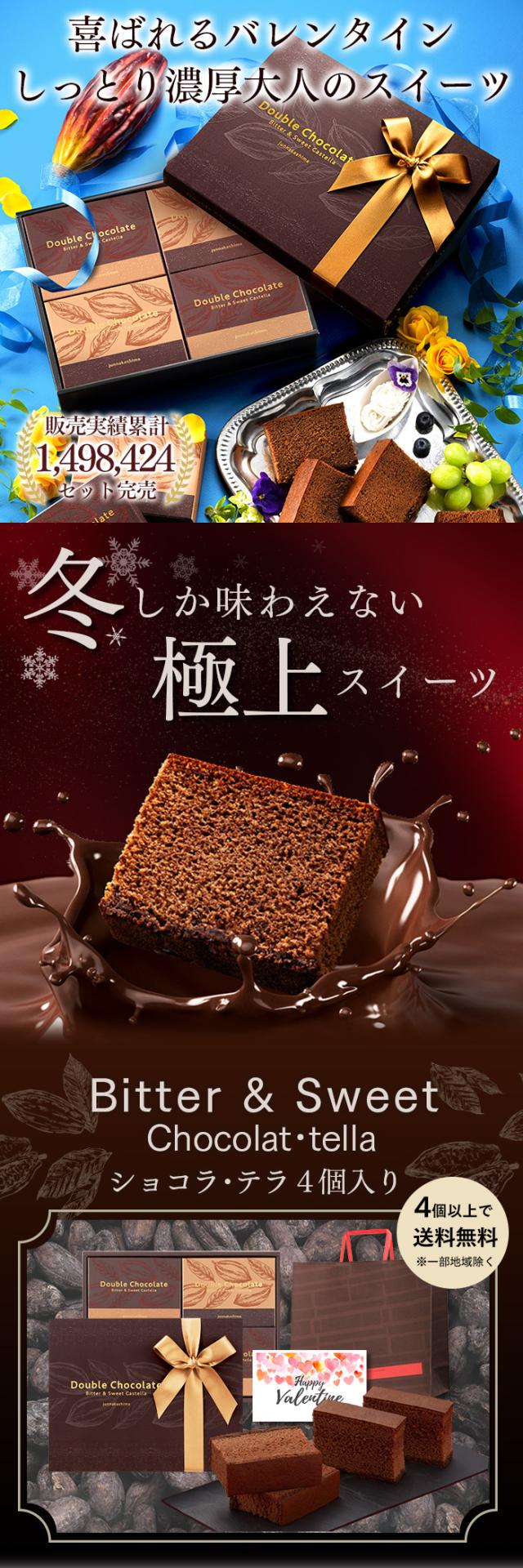 バレンタイン [ チョコ ギフト 義理 可愛い 人気 スイーツ お配り 本命 お菓子 大量 2026 ] カステラ ショコラ・テラ 個包装 4個 VD1D 職場 おしゃれ ネット限定 ご褒美 プレゼント バレンタインデー 義理チョコ 会社