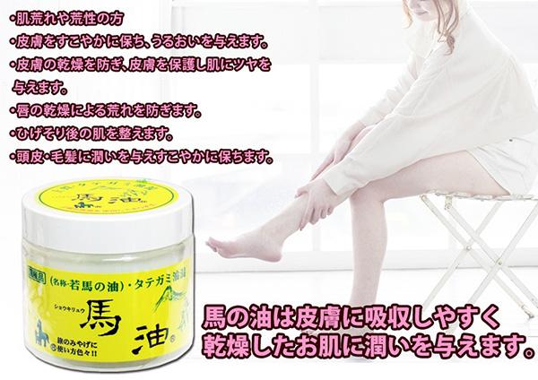 馬の油は皮膚になじみやすく、お肌に潤いを与えます