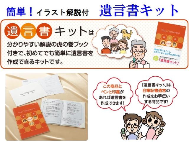 ★遺言書虎の巻:1冊 ★遺言書用紙:4枚 ★遺言書下書き用紙:2枚 ★保管用台紙:1枚 ★封印用封筒:1枚
