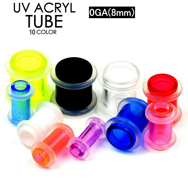 【メール便対応】ボディピアス UVアクリル チューブ 0G(8mm) 両側をシリコンゴムで固定 カラー【チューブ アイレット リティーナー ホールトゥピアス】0ゲージ(8ミリ)┃