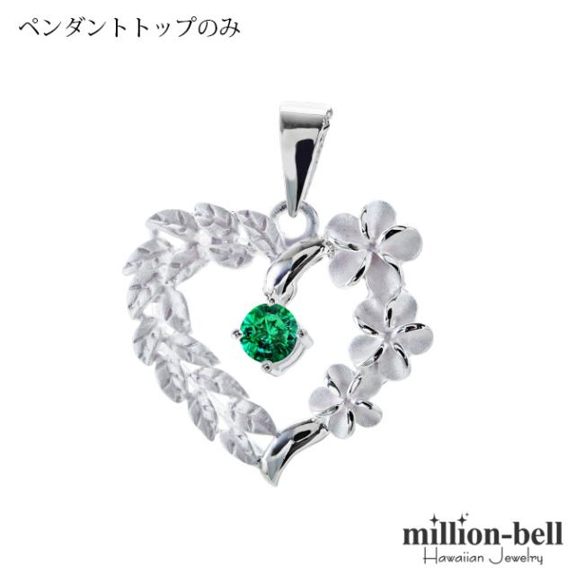 ハワイアンジュエリー シルバー ペンダントトップ 5月の誕生石 エメラルドグラス オープンハート マイレリーフ プルメリア シンプル シルバー925 ネックレス チェーン別売 ペンダントヘッド 彼女 妻 女性 レディース 誕生日 プレゼント 母の日 【品番:SP53801-5G】