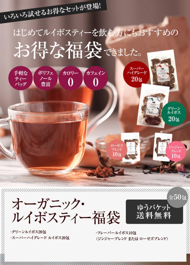 ルイボスティー オーガニック 福袋 ティーバッグ全50包 有機JAS ルイボス ルイボスティ ハーブ 健康茶 お茶 ジンジャー お正月