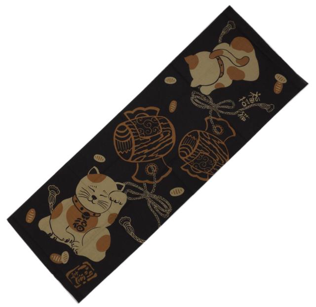 手拭い てぬぐい 和柄 縁起 日本製 こげ茶色地福招き猫ねこ 綿 男性用 メンズ 女性用 レディース 着物 浴衣 開運亭 猫柄 ネコ