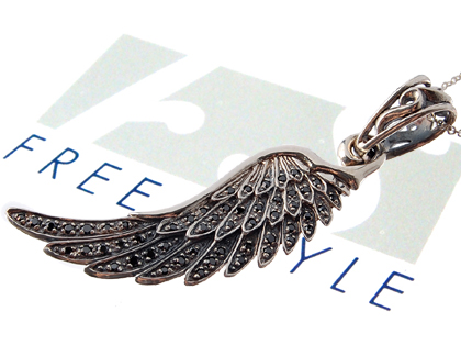 ■送料無料■【FREE STYLE】ブラックCZフェザーフリースタイルペンダントst/