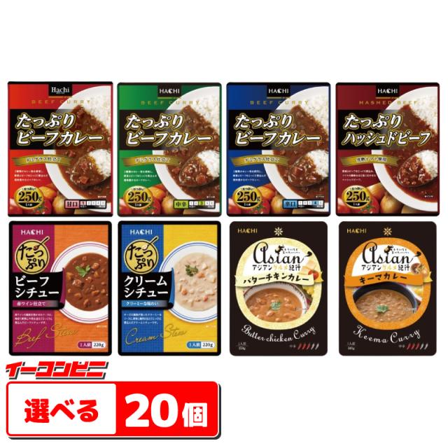 ハチ食品 たっぷりカレー・シチュー・アジアンカレー 組み合わせ選べる20個 レトルトカレー