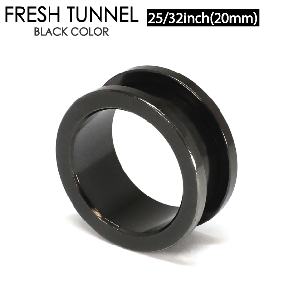 メール便 送料無料 ボディピアス フレッシュトンネル ブラック 25/32インチ(20mm) BLACK アイレット ボディーピアス サージカルステンレス カラーコーティング加工 イヤーロブ ホールトゥに最適 20ミリ┃