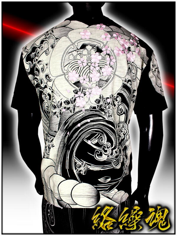 和柄の王道ブランド!!絡繰魂 黒 家紋桜刺繍 半袖Tシャツ 202748 カラクリ 服 チョイワル ヤクザ ヤンキー オラオラ系 悪党の店 バースジャパン BIRTHJAPAN