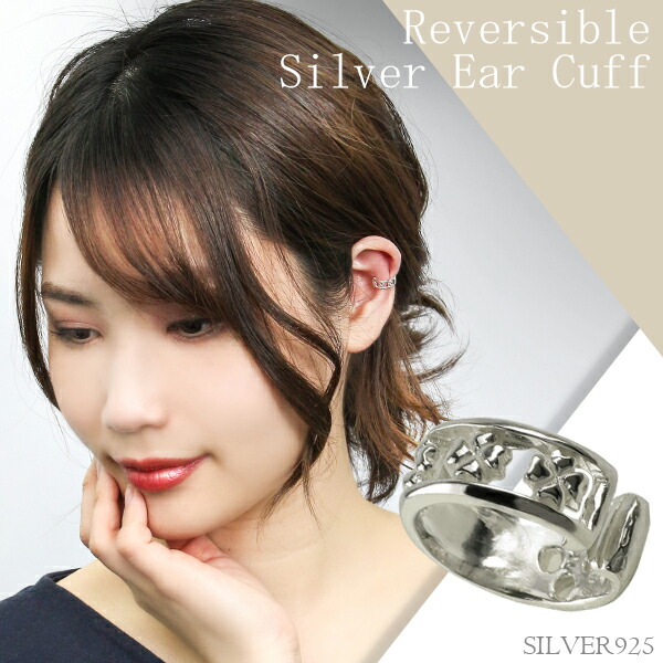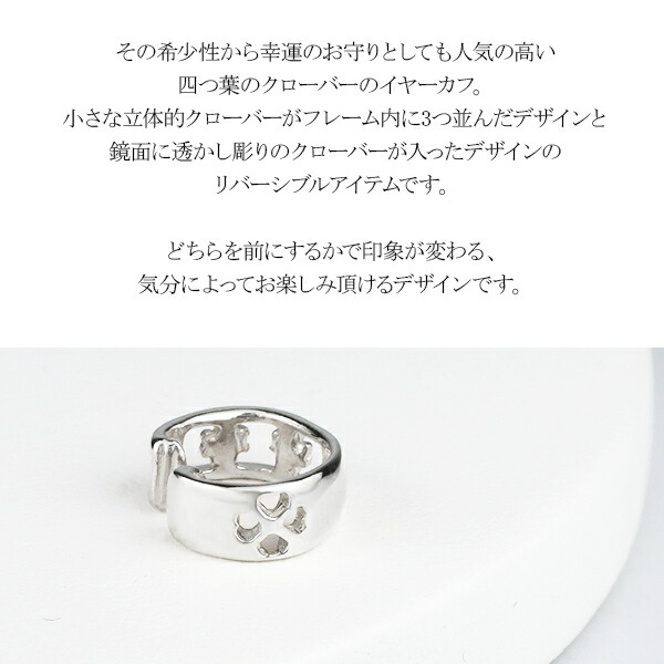 リバーシブル 四葉のクローバー シルバーイヤーカフ (1P/片耳用)