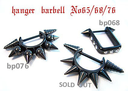 16ゲージ スパイクハンガーバーベル ブラック ボディピアス bp076-065-068