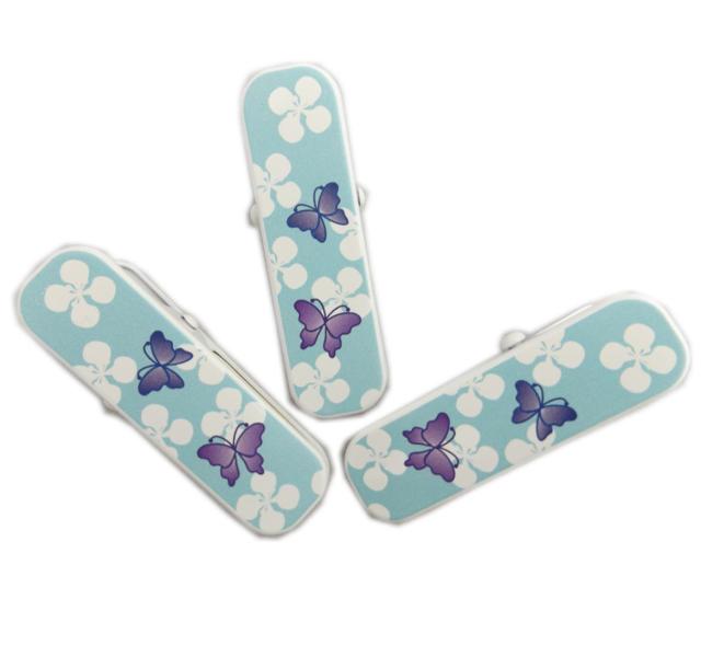 クリップ 着物 きもの 帯 ハンディ 日本製 大3本セット 水色地蝶 和装 浴衣 着付け小物 ハンディ 仮留め 衿止め 女性用 レディース