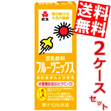 送料無料 紀文(キッコーマン)豆乳飲料フルーツミックス200ml紙パック36本(18本×2ケース)