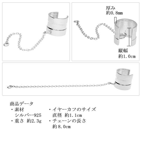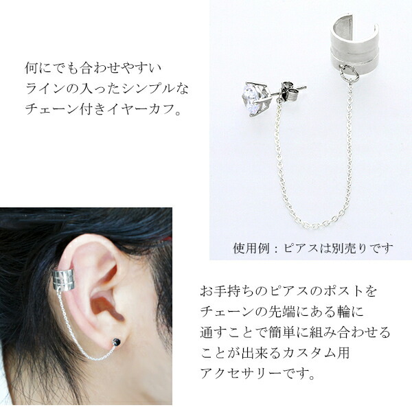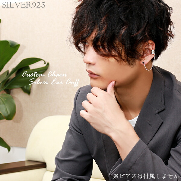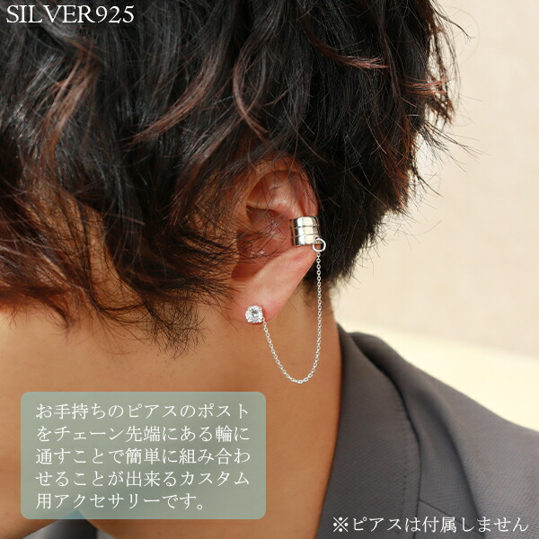 チェーン付 シルバーイヤーカフ イヤーカフス 1P 片耳用 メンズ ピアス シルバー カスタム用 男性 メンズイヤーカフ 男性用イヤーカフ