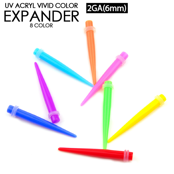 【メール便対応】UVアクリル ビビッドカラー 拡張器 2G (6mm) エキスパンダー カラー エクステンション ニードル ホールアップ ボディピアス 2ゲージ(6ミリ)┃