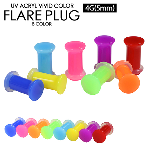 【メール便対応】ビビッドカラー フレアプラグ 4G(5mm) UVアクリル カラー ボディピアス リテーナー ホール キープ カラフル マット シリコンゴム ロブ 4ゲージ(5ミリ)┃