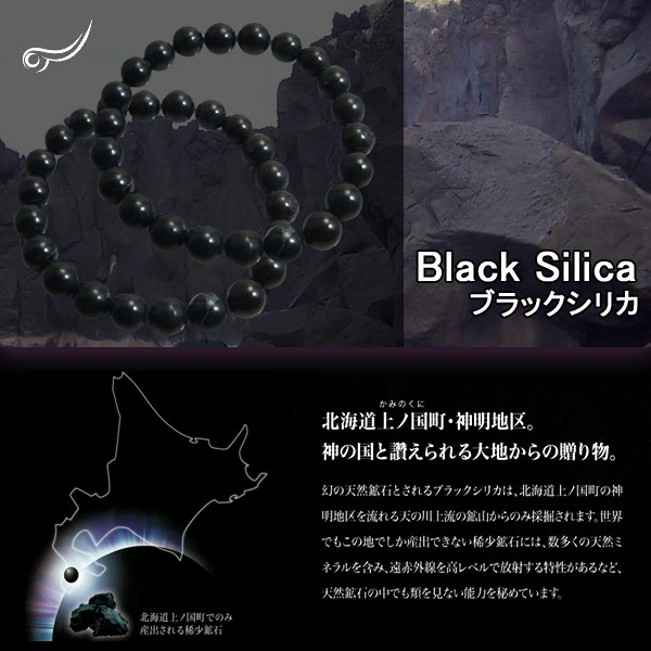 ブラックシリカは血流促進に効果があるとされる「遠赤外線」の放射率が大変高く、ゲルマニウムをはじめとする多く天然石の中でも群をぬいて優れています。さらにその放射率は半永久的に持続します。遠赤外線の作用により新陳代謝の活性化や血行促進が期待できます。