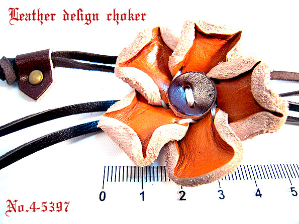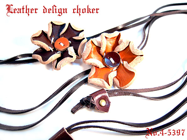 レザーフラワー/ロングチョーカー/ネックレス/4-5397