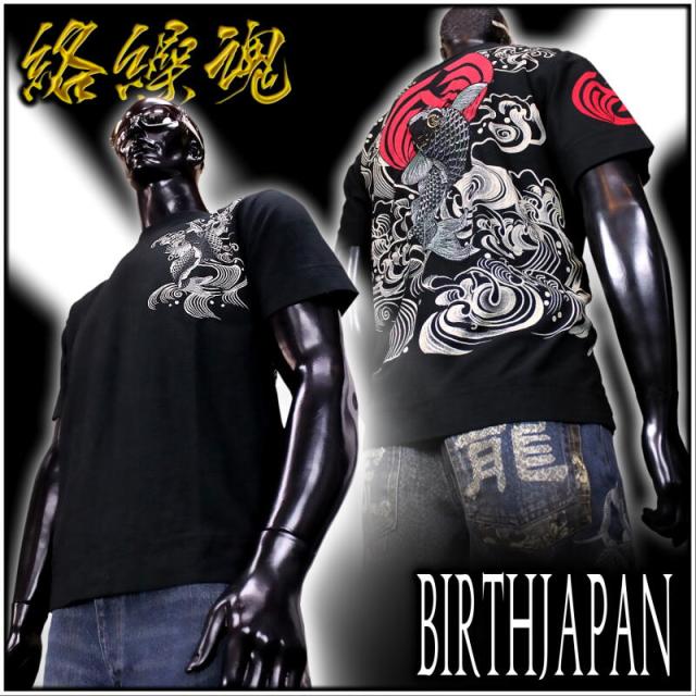 和柄絡繰魂 登り鯉刺繍 半袖Tシャツ 202230 カラクリ 服 チョイワル ヤクザ ヤンキー オラオラ系悪羅悪羅系 悪党の店 バースジャパン BIRTHJAPAN