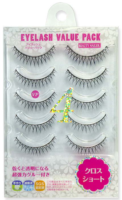 アイラッシュバリューパック ★クロスショート(VP-4) ★グルー付きのつけまつ毛♪つけまつげ5ペア♪