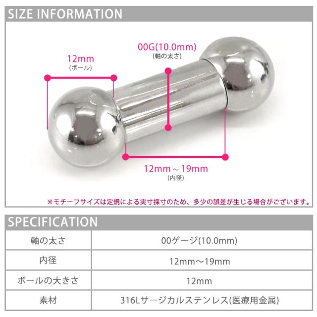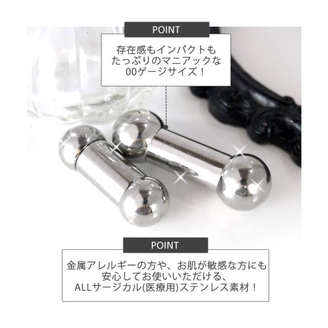ボディピアスの定番商品、ストレートバーベル。広げて拡張したラージホールを持つ上級者におススメの00Gボディジュエリー。マニアックな00ゲージは約10mm。軸の長は2種でご用意。舌ピアスなどで迫力の演出ができます。素材はサージカル(医療用)ステンレス。金属アレルギーが起きにくい素材なので安心。オートクレーブ滅菌サービスもご利用可能です。