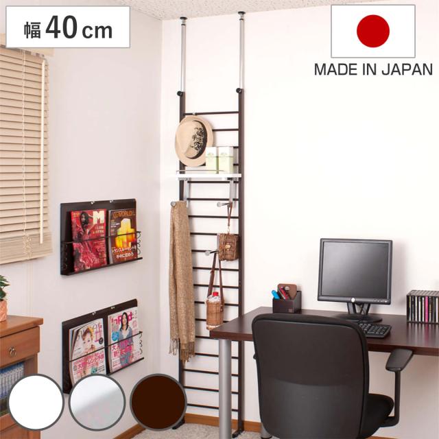 突っ張り ラダーラック 幅40cm 棚付 日本製 ( つっぱり ラック 突っ張りラダーラック 突っ張りラック ウォールラック 壁面収納 パーテーション 突っ張り収納 伸縮 ラダーシェルフ つっぱりラック )