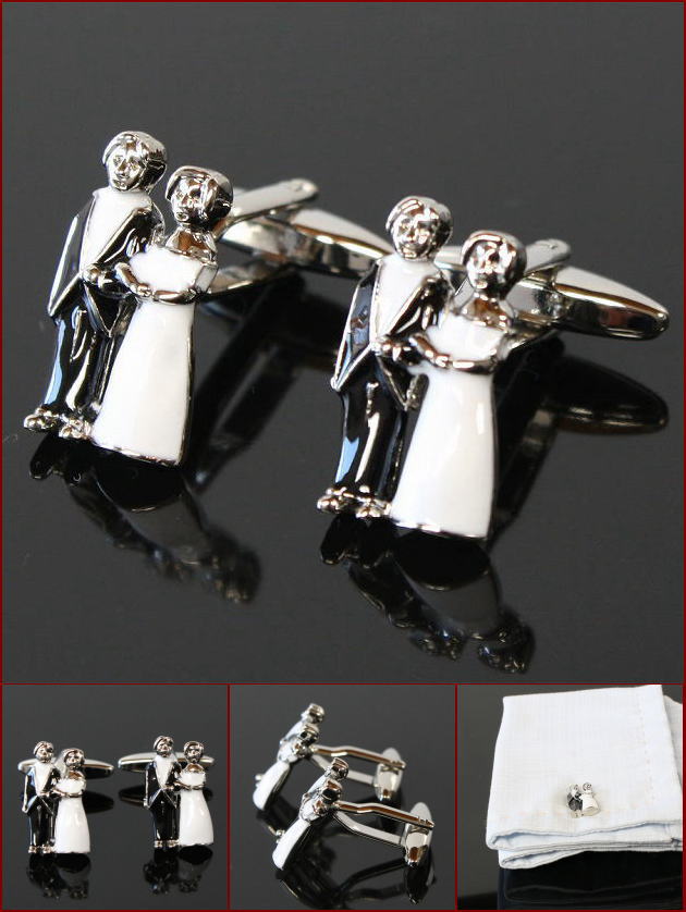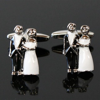 新郎と新婦をモチーフにしたおめでたいカフスボタン。