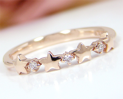 人気の星モチーフとダイヤモンドを交互に並べ、小指を飾るピンキーリングに仕上げました♪ 一列に並んだモチーフが、たまらなく愛らしい!細身ラインが女性らしさを引き立てて、センスUPの手元を創ります。繊細さと愛らしさの両方をかもし出す存在感は、大人と少女の間を行きかう女心のよう。儚げな存在感で、女性らしさを見せ付けて!