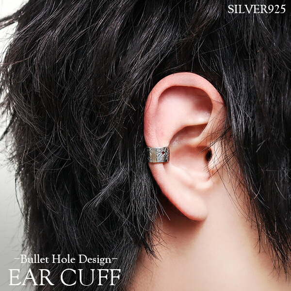 弾痕 シルバー イヤーカフ 1P 片耳用 シルバー925 イヤーカフス イヤカフ ノンホールピアス イヤリング 銃 ピストル ロック カジュアル メンズ レディース