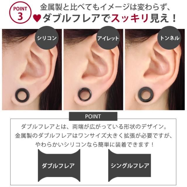 ピアス軟骨ピアス ボディピアス ダブルフレアシリコンアイレット 4G 2G 0G 00G
