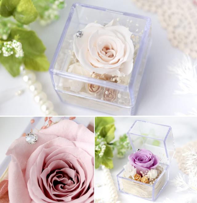 同梱OK ラインストーンがキラリ プチプリザinキューブ 選べる14色 プリザーブドフラワー ギフト 4個以上で送料無料<1配送先に限る> 結婚式 引き出物 花 お祝い バラ 誕生日 プレゼント まとめ買い 結婚祝い 出産祝い プチギフト お歳暮 冬ギフト クリスマス いい夫婦の日