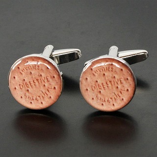 ビスケットをモチーフにしたユニークななカフスボタン。
