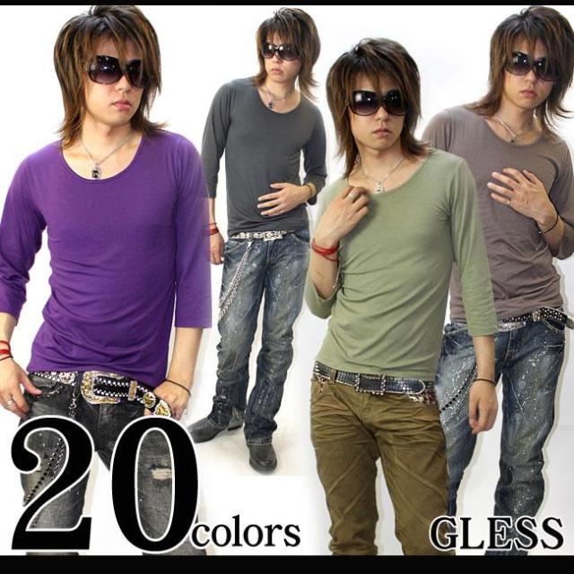 ★激安980円★GLESS(グレス)七分袖Uネック無地カットソー【20color】無地 新作 メンズ お兄系 メンナク お兄 メンエグ Tシャツ