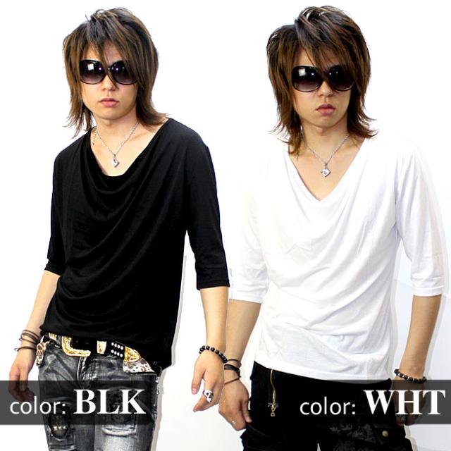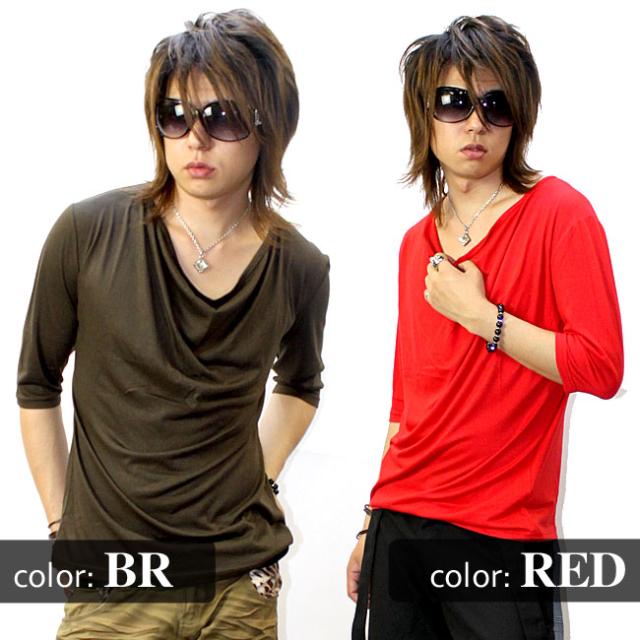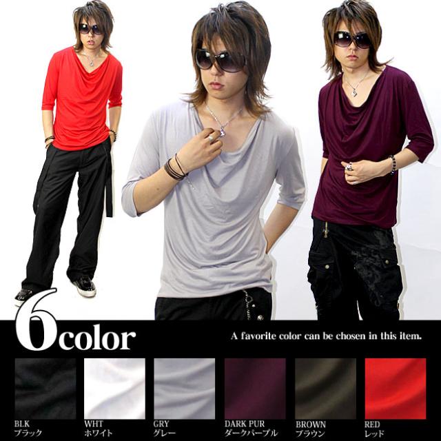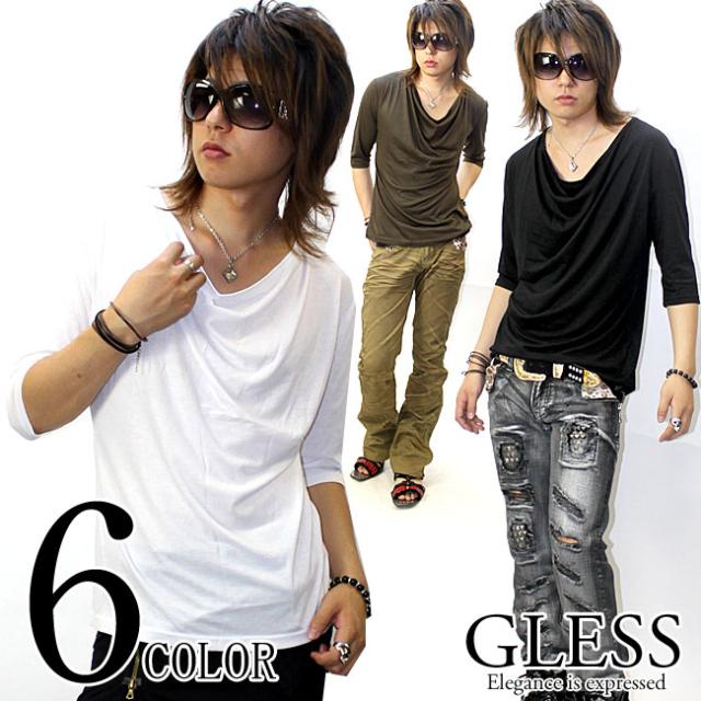 ★激安1480円★GLESS(グレス)ドレープ五分袖カットソー【6color】無地 新作 メンズ お兄系 メンナク お兄 メンエグ Tシャツ
