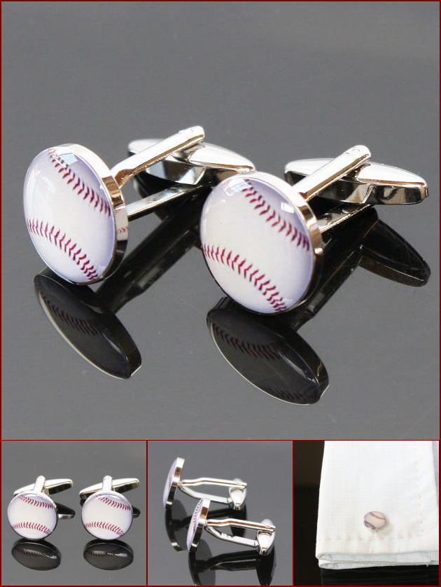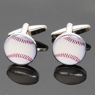 野球のボールをモチーフにしたユニークななカフスボタン。