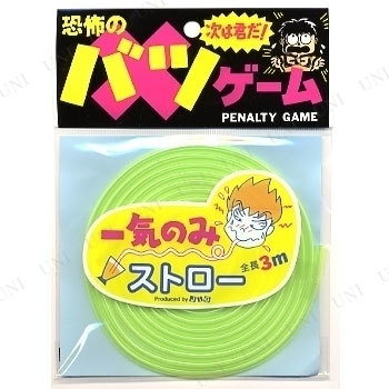 | 商品説明 | 長さ3mのロングストローで早飲み競争です。罰ゲームには別売の「青汁」「赤汁」がお奨めです。ニガイものこそ、一気に飲み干しましょう |