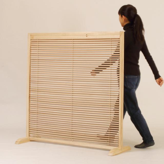 天然木のあたたかい風合いを活かした、高さ119cmの衝立です。間仕切りとしての機能性はもちろん、暮らしにやさしいアクセントを加えるデザインです。