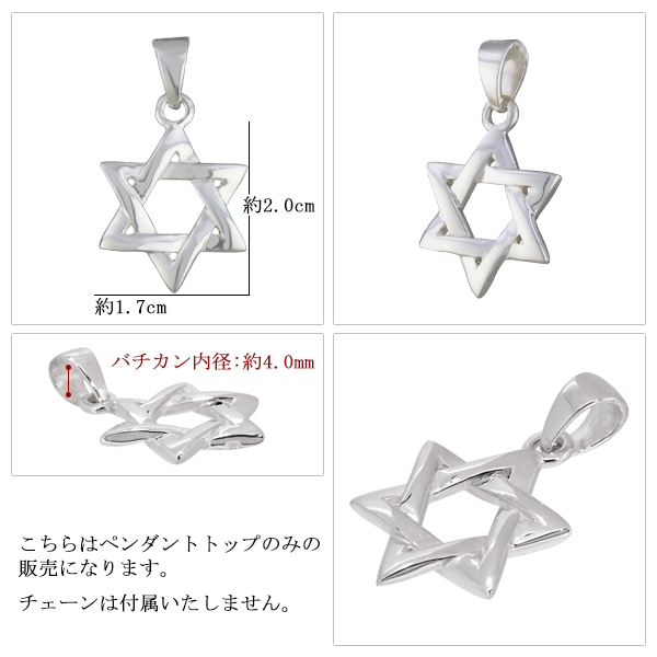 六芒星 ヘキサグラム シルエット ペンダントトップ (チェーンなし) シルバー925 ネックレストップ ペンダントヘッド ネックレスチャーム