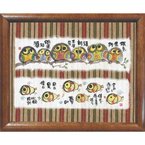 取寄せ品 御木幽石 福朗・不苦労 ブラウン 福福額 フレーム付きポスター メッセージアート