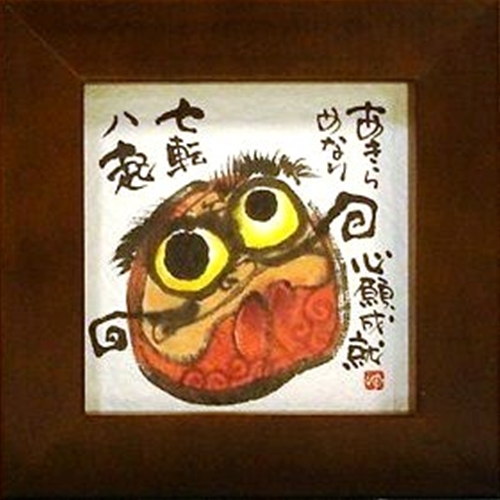 取寄せ品 御木幽石 あきらめない七転八起 ブラウン ほほえみ-64 ミニフレーム付きポスター メッセージアート