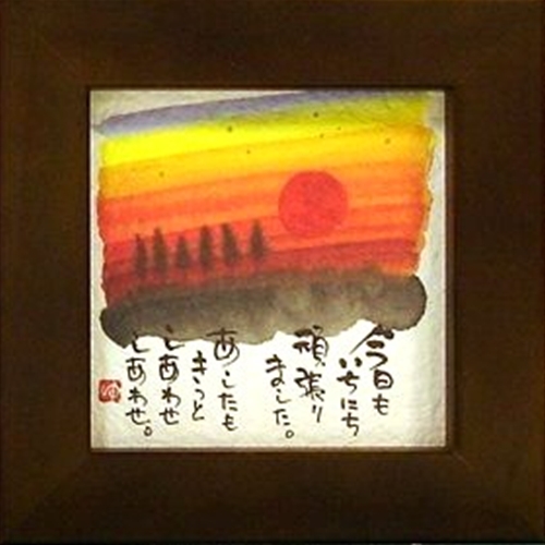 取寄せ品 御木幽石 あしたもきっとしあわせ ブラウン ほほえみ-69 ミニフレーム付きポスター メッセージアート通販
